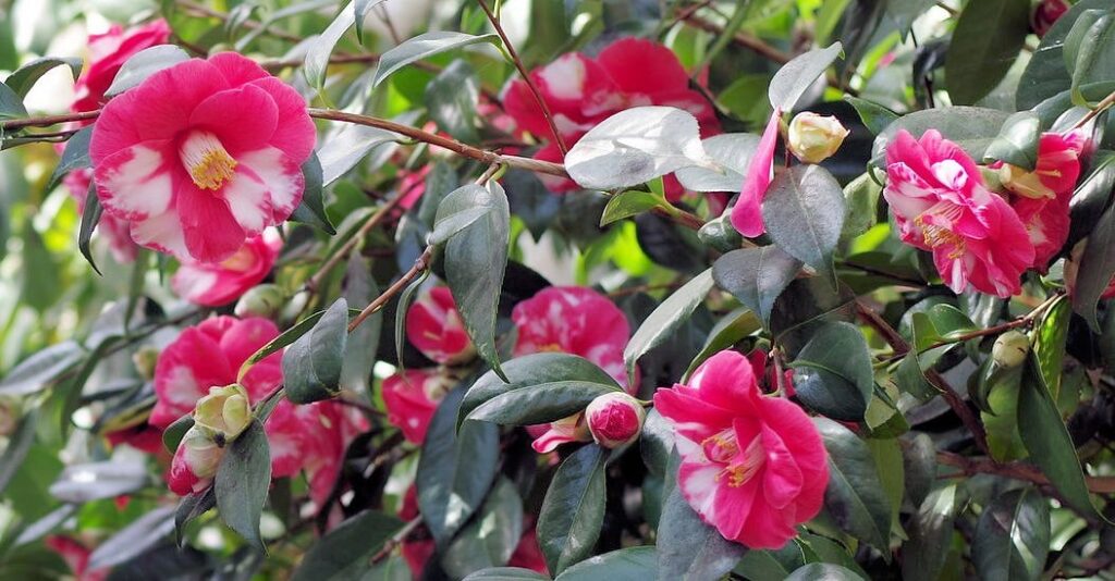 The gardens now feature around 500 different cultivars of camellias, ranging from large flowering varieties to miniature forms.